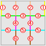 赤色が壁と仮定すると、外壁の中に1つ飛びで壁が9個あります。