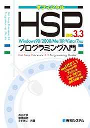 | 目次 | 1 HSPの準備 2 プログラミングの基礎 3 HSPプログラムの作成 4 HSPプログラミング詳説 5 特製サンプルプログラム 資料(コマンド一覧/索引・コラム) |
