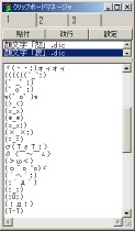 ユーザーが辞書ファイルとしてよく使う言葉を1つのファイルとして保存しておけば、 コピーした時と同様に文字が格納され、すぐに貼り付けが可能となります。 今回はタブ切り替えによるマルチクリップボードとなりました。 設定により最大で99ページ分コピーを蓄えることが可能です。 サンプル辞書を別途ご用意しました。 「日付関連」「県名」「顔文字(笑)」「顔文字(怒)」「顔文字(哀)」「顔文字(その他)」 現在この6つをパックにしております。