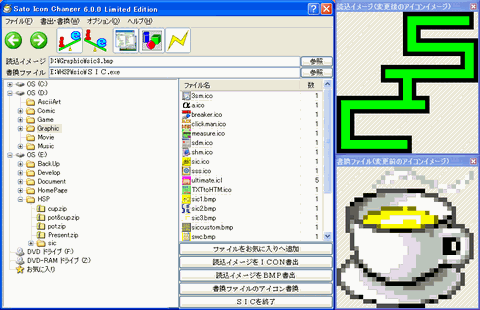 HSP3製実行ファイルでもアイコン書換可能な機能限定版をリメイクして一般公開。